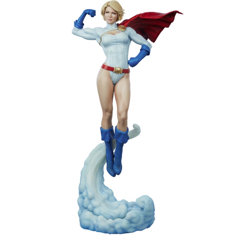 DC Comics – Power Girl Premium Format Statue”Unfortunately for you, you’re not dealing with Superman… you’re dealing with me!” Sideshow presents the Power Girl Premium Format Figure, muscling her way into your multiverse of DC Comics collectibles. Soaring through the skies above a swirling cloud base, the Power Girl Premium Format Figure measures 25″ tall. As the cousin of Superman from Earth-2, Kara Zor-L is known for her strength, maturity, and Kryptonian physiology, empowered by Earth’s yellow sun. She poses powerfully here, flexing her muscles in a moment of calm between battles. Inspired by her appearance in DC Comics, the polyresin Power Girl Premium Format Figure features an entirely sculpted costume that captures the effortless and iconic style of the crimefighter from Krypton. Her signature costume features a white leotard, blue gloves and boots, and a red belt and capelet with gold accents. The textures designed into her outfit mimic the appearance of realistic leather, stitching, and even the dramatic flutter of her cape in the breeze. Completed with a confident smirk on her blonde portrait, Kara Zor-L is ready to fight for justice on any Earth. No matter where you are in the multiverse, the Power Girl Premium Format Figure makes an unbeatable addition to any DC fan’s collection. Bring her home today!